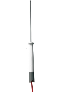 Sensor: Spitzer Fühler (NL = 120 mm, Ø 3 mm, mit 150 cm PTFE-Kabel, Edelstahlnadel, bis +400 °C) Arbeitstemperatur des Griffs: max. +120 °C