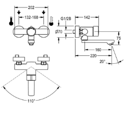F3S-Mix Selbstschluss-Wandbatterie DN 15 als Eingriffmischer zur Aufputzmontage mit arretierbarem Schwenkauslauf, für Waschanlagen. Selbstschluss-Mischkartusche, hydraulisch gesteuert, kolbenlose Bauart, selbsttätig schließend, Fließzeit stufenlos einstellbar. Mit einstellbarem und verdrehsicherem Temperaturanschlag. Zum Anschluss an Warm- und Kaltwasser. Gehäuse Messing poliert verchromt. La minarstrahlregler mit integriertem Durchflussmengenregler 6,0 l/min. Mit verstellbaren Anschlüssen, Rückflussverhinderern, Sieben und Schraubrosetten. Ausladung 220 mm.