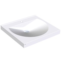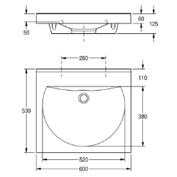 RONDA Einzelwaschtisch aus kunstharzgebundenem Mineralwerkstoff MIRANIT, mit porenfreier, glatter Oberfläche (temperaturbeständig bis 80 °C), Farbton Alpinweiß. Mit einer nahtlos eingeformten, runden Mulde, ohne Überlauf. Befestigung an Beckenrückwand. Hintere Schwallkante. Dreiseitige Schürze 60 mm (H). Ohne Armaturenbohrung, inklusive Befestigungsmaterial. Abmessungen 600 x 60 x 530 (B x H x T) Muldenmaße 520 x 90 x 380 mm (B x H x T)