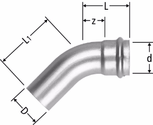 Optipress-Aquaplus-Bogen 45° mit Einsteckende mit Einsteckende