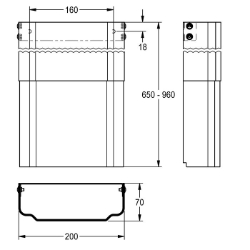 Gehäuseverlängerung aus Edelstahl, pulverbeschichtet Farbton Alpinweiß, höhenverstellbar, für F5-Duschpaneele aus Mineralwerkstoff MIRANIT, zur Verkleidung von Aufputzrohrinstallationen, komplett mit Befestigungsmaterial. Gehäusemaße ca. 200 x 650 bis 960 mm (B x H)
