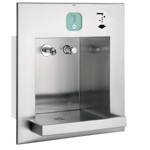 Waschplatzeinheit zum Wandeinbau, Vandalismus hemmend, speziell geeignet für öffentliche WC-Anlagen auf Parkplätzen und in Parkhäusern. Funktionskomponenten über Technikraum zugänglich. Kompletteinheit mit Gehäuse, Nutzungsraum und Becken aus Chromnickelstahl, Oberfläche gebürstet, verschweißt. Gehäuse wandbündig im Benutzerraum montiert. Becken mit fugenlos eingeformtem Siebablauf und Ablaufbogen DN 40. Manuell zu betätigender Seifenspender, Wandauslauf für Trinkwasser, Messing poliert verchromt, in der Rückwand des Nutzungsraumes. Mit 2 Bediensymbolen als Sensorschutz im Gehäuse für Steuerung Wasserabgabe und Seifenspender. Nicht sichtbare Befestigung mittels Gewindestangen und Stabilisierungsstreben im Technikraum. Abmessungen 475 x 530 x 390 mm (B x H x T) Beckenausladung 125 mm Hinweis: Notwendige Armaturenkomponenten und passender Seifentank gehören nicht zum Lieferumfang des Waschtisches.