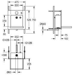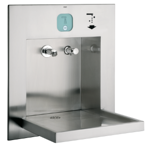 Waschplatzeinheit zum Wandeinbau, barrierefreie Ausführung, Vandalismus hemmend, speziell geeignet für öffentliche WC-Anlagen auf Parkplätzen und in Parkhäusern. Funktionskomponenten über Technikraum zugänglich. Kompletteinheit mit Gehäuse, Nutzungsraumund Becken aus Chromnickelstahl, Oberfläche gebürstet, verschweißt. Gehäuse wandbündig im Benutzerraum montiert. Becken mit fugenlos eingeformtem Siebablauf und Ablaufbogen DN 40. Manuell zu betätigender Seifenspender, Wandauslauf für Trinkwasser, Messing poliert verchromt, in der Rückwand des Nutzungsraumes. Mit 2 Bediensymbolen als Sensorschutz im Gehäuse für Steuerung Wasserabgabe und Seifenspender. Nicht sichtbare Befestigung mittels Gewindestangen und St abilisierungsstreben im Technikraum. Abmessungen 475 x 530 x 470 mm (B x H x T) Beckenausladung 310 mm Hinweis: Notwendige Armaturenkomponenten und passender Seifentank gehören nicht zum Lieferumfang des Waschtisches.
