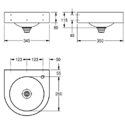 ANIMA Wandtrinkbrunnen, Chromnickelstahl, Oberfläche seidenmatt, Materialstärke 1 mm, nahtlos eingeformte runde Mulde ohne Überlauf, mit umlaufender Schürze, Armaturenbank 55 mm mit Armaturenbohrung, Siebablaufventil G 1 1/4 B, inklusive Befestigungsmaterial. Abmessungen 345 x 118 x 350 mm (B x H x T) Muldenmaße 260 x 118 mm (D x H)