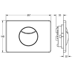 Betätigungsplatte aus Edelstahl für Wandeinbau-Spülkasten im AQUAFIX-Installationselement, mit 2 Betätigungstasten für 2-Mengen-Spül ung oder Start/Stopp-Spülung, Tasten- und Einhängerahmen, Befestigungsbolzen sowie Sicherungsschraube. Abmessungen 207 x 148 mm (B x H)