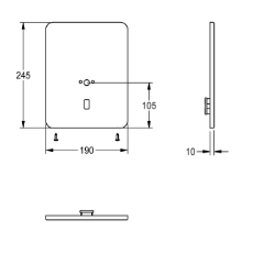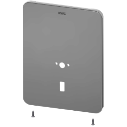 Edelstahlabdeckplatte 190 x 245 mm, mit Halteplatte für Wandauslauf, Sensorhalterung und Befestigungsschrauben.