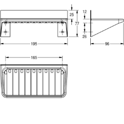 Ablageschale, für Aufputzmontage, Chromnickelstahl, Oberfläche seidenmatt, Materialstärke 0,8 mm, mit Abflusslöchern, inklusive Edel stahlschrauben und Dübel. Abmessungen 195 x 77 x 96 mm (B x H x T)