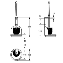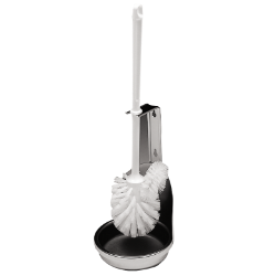 WC-Bürstenhalter, für Aufputzmontage, Chromnickelstahl, Oberfläche seidenmatt Materialstärke 0,9 mm, Haltebügel für Bürste, weiße Ny lonbürste mit Randreiniger, mit nicht entnehmbarer integrierter Abtropfschale, inklusive Befestigungsmaterial. Abmessungen 135 x 235 x 135 mm (B x H x T)