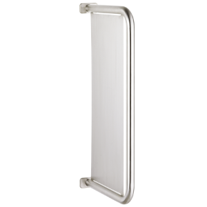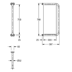 Urinaltrennwand, für Aufputzmontage, Chromnickelstahl, Oberfläche seidenmatt, Materialstärke 1,5 mm, Rohrdurchmesser 32 mm, mit zwei Edelstahl Rosetten für verdeckte Montage, inklusive Befestigungsmaterial. Abmessungen 60 x 760 x 397 mm (B x H x T)
