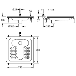 Hock-WC, aus Chromnickelstahl, Oberfläche seidenmatt, Materialstärke 1 mm, passend für Wandeinbau-Druckspüler DN 20, Wasserspülmenge 9 Liter, mit umlaufender Abkantung (22 mm), umlaufenden Spülrand und suizidhemmend. Anschluss hinten senkrecht mit Verschraubung Durchmesser 28 mm, Abgang innen senkrecht DN 100, inklusive Befestigungsmaterial und Höhennivellierung. Abmessungen 755 x 200 x 755 mm (B x H x T)