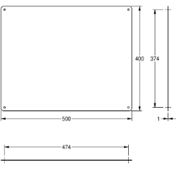 Spiegel, für Aufputzmontage, Chromnickelstahl, Oberfläche hochglanzpoliert, Materialstärke 1,0 mm, vier sichtbare Bohrungen für Befestigung, inklusive Edelstahlschrauben und Dübel. Abmessungen 500 x 400 mm (B x H)
