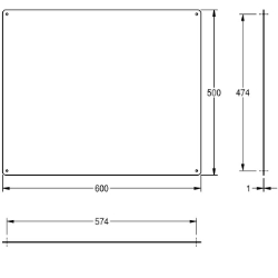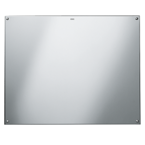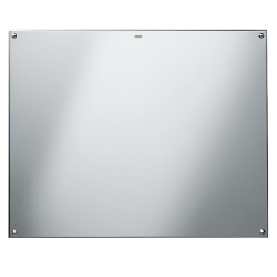 Spiegel, für Aufputzmontage, Chromnickelstahl, Oberfläche hochglanzpoliert, Materialstärke 1,0 mm, vier sichtbare Bohrungen für Befestigung, inklusive Edelstahlschrauben und Dübel. Abmessungen 600 x 500 x 1 mm (L x B x H)
