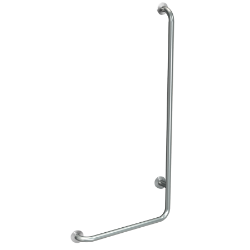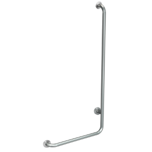 Winkelgriff 90° für Aufputzmontage, Chromnickelstahl, Oberfläche seidenmatt, Schliff mit rutschhemmender Wirkung, Rohrdurchmesser 32 mm, Wandstärke 1,2 mm, Wandabstand 82 mm, geprüft und zertifiziert (LGA), mit drei Edelstahl Rosetten für verdeckte Montage, inklusive Edelstahlschrauben und Dübel. Ausführung links Abmessungen 493 x 828 x 82 mm (B x H x T)