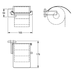 WC-Rollenhalter für Wandmontage, Edelstahl, Oberfläche hochglanzpoliert, für 1 Rolle mit max. 130 mm (D), Edelstahl-Klappabdeckung, quadratische Abdeckung zum Verbergen der Befestigung der Schrauben mit Bohrung auf Unterseite zur Anbringung, inklusive Edelstahlschrauben und Dübel. Abmessungen 165 x 54 x 179 mm (B x H x T)