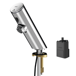 F3E Standventil DN 15 für Waschanlagen, opto-elektronisch gesteuert. Zum Anschluss an vorgemischtes Warmwasser oder Kaltwasser mittels Schlauch und Sieb. Steuerelektronik, Magnetventilkartusche und Sensor im Ganzmetallgehäuse, Messing poliert verchromt. Luftsprudler mit integriertem Durchflussmengenregler 6,0 l/min. Aktivierte Hygienespülung 24 Stunden nach letzter Betätigung, Sicherheitsabschaltung bei Dauerreflexion und Speicherung von Statistikdaten. Mit Möglichkeit der Parametrierung und Kommunikation über optionale bidirektionale Fernbedienung. Mit Batteriefach inklusive 6 V Lithium Batterie (CR-P2) zur Montage unterhalb des Waschtisches.