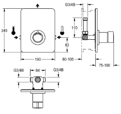 F3S-Mix Selbstschluss-Eingriffmischer DN 15 als Fertigbauset zur Wandeinbaumontage im Rohbauset, für Duschanlagen. Selbstschluss-Mis chkartusche, hydraulisch gesteuert, kolbenlose Bauart, selbsttätig schließend, Fließzeit stufenlos einstellbar. Mit einstellbarem Temperaturanschlag. Zum Anschluss an Warm- und Kaltwasser. Ganzmetallausführung, sichtbare Teile poliert verchromt. Halterahmen inklusive Profildichtung, Edelstahlabdeckplatte 190 x 245 mm mit verdeckter Schraubbefestigung, verchromte Kunststoffrosette, Rückflussverhinderer und Sieben. Tiefenverstellbarkeit 25 mm.