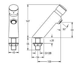 F3S Selbstschluss-Standventil DN 15 für Waschanlagen. Selbstschlusskartusche, hydraulisch gesteuert, selbsttätig schließend, Fließzeit stufenlos einstellbar. Mit Antiblockiersystem 2 (ABS2) für Sicherheitsabschaltung bei Dauerbetätigung. Zum Anschluss an vorgemisc htes Warmwasser oder Kaltwasser. Gehäuse Messing poliert verchromt. Luftsprudler mit integriertem Durchflussmengenregler 3,0 l/min.