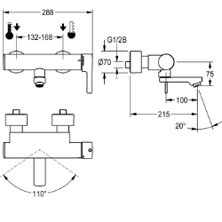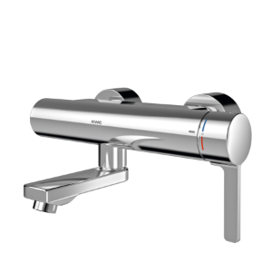 F5L-Therm Thermostat-Einhebelmischer als Wandbatterie DN 15 zur Aufputzmontage mit arretierbarem Schwenkauslauf, für Waschanlagen. T hermostatisch gesteuerte Mischkartusche mit Dehnstoffelement und aktivem Verbrühungsschutz sowie einstellbarem, verdrehsicherem Temperaturanschlag und Keramikscheibentechnik. Mit Vorrichtung für die optionale Hygieneeinheit zur Durchführung einer automatischen Hyg ienespülung, programmgesteuerten thermischen Desinfektion (zusätzliche Bypass-Magnetventilkartusche notwendig) und Speicherung von Statistikdaten. Zum Anschluss an Warm- und Kaltwasser. Verbrühungssicheres Safe-Touch-Gehäuse, Ganzmetallausführung, Messing poliert verchromt. Laminarstrahlregler mit integriertem Durchflussmengenregler 6,0 l/min. Mit verstellbaren und absperrbaren Anschlüssen mit Rückflussverhinderern und Sieben, vollständig abgedeckt durch tiefenverstellbare Schraubrosetten. Ausladung 215 mm.