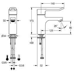 KWC F5L-Therm F5LT1010 Thermostat-Standbatterie mit Rückflussverhinderer:nein, Berechnungsdurchfluss Trinkwasser:0.07 l/s, Berechnungsdurchfluss Warmwasser:0.07 l/s, Art.Nr. : 2030066301