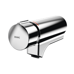 F5S-Mix Selbstschluss-Eingriffmischer DN 15 mit Schrägauslauf zur Montage an Armatureneinheit oder separaten Wandflansch, für Wascha nlagen. FRAMIC Selbstschluss-Mischkartusche, hydraulisch gesteuert, wartungsarm und stagnationsfrei, mit Keramikscheibentechnik, selbsttätig schließend, fließdruckunabhängig durch mediengetrennte Bauart. Fließzeit stufenlos einstellbar. Mit einstellbarem und verdr ehsicherem Temperaturanschlag. Zum Anschluss an Warm- und Kaltwasser. Ganzmetallausführung, Messing poliert verchromt. Diebstahlhemmender Luftsprudler, Bauform SLIM, mit integriertem Durchflussmengenregler 5,0 l/min. Übereinander liegende Anschlüsse mit Rückflussverhinderern.