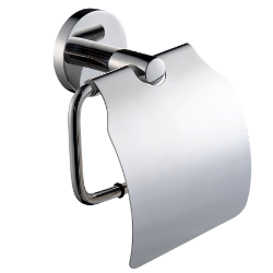 WC-Rollenhalter für Wandmontage, Edelstahl, Oberfläche hochglanzpoliert, für 1 Rolle mit max. 130 mm (D), Edelstahl-Klappabdeckung, runde Abdeckung zum Verbergen der Befestigung der Schrauben mit Bohrung auf Unterseite zur Anbringung, inklusive Edelstahlschrauben und Dübel. Abmessungen 140 x 162 x 65 mm (B x H x T)