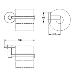 Ersatz-WC-Rollenhalter für Wandmontage, Edelstahl, Oberfläche hochglanzpoliert, runde Abdeckungen zum Verbergen der Befestigung der Schrauben mit Bohrung auf Unterseite zur Anbringung, inklusive Edelstahlschrauben und Dübel. Abmessungen 170 x 60 x 65 mm (B x H x T)