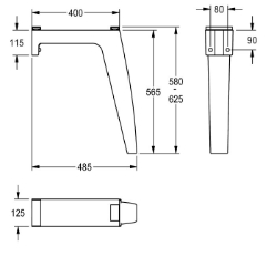 Winkelfuß zur Wandmontage, aus kunstharzgebundenem Mineralwerkstoff, Farbton Anthrazit, für Waschrinne FUTURA exklusiv mit Beckenoberkante 700 mm. Abmessungen 125 x 565 x 485 mm (B x H x T)