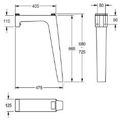 Winkelfuß zur Wandmontage, aus kunstharzgebundenem Mineralwerkstoff, Farbton Anthrazit, für Waschrinne FUTURA exklusiv mit Beckenoberkante 800 mm. Abmessungen 125 x 665 x 475 mm (B x H x T)