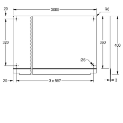 Rückwand für PLANOX Waschrinnen, Chromnickelstahl, Oberfläche matt geschliffen, Materialstärke 0,8 mm, inklusive Befestigungsmaterial. Abmessungen 3000 x 400 x 3 mm (B x H x T)