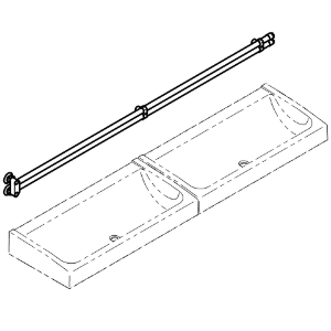 Doppelte Wasserverteilungsleitung DN 25, I-E 3 bzw. I-D 6 aus Chromnickelstahl, geschliffen, für Waschrinne zur einreihigen bzw. doppelreihigen Aufstellung, mit Bohrungen für Einzelklemmbatterien bzw. Doppelklemmbatterien, Wasseranschluss G 1 B, Anzahl der Plätze 3 bzw. 6, Waschplatzbreite 600 mm. Rohrträger für doppelreihige Aufstellung separat. Länge 1760 mm Anschluss von hinten bzw. von oben über Doppelexzenterwinkel oder Anschluss stirnseitig über Muffen