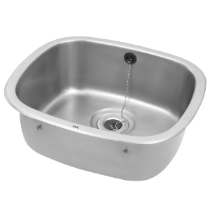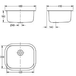 Einlegebecken, Chromnickelstahl, Oberfläche seidenmatt, Materialstärke 0 ,9 mm, 17 mm umlaufender Rand, mit Überlauf- und 38 mm Ablaufprägung, Ablauf mittig, inklusive Befestigungsklammern. Nicht im Lieferumfang enthalten: Ablauf, Stopfen, Kette und Überlaufgarnitur. Hinweis: Möglicherweise muss die Arbeitsplatte zur Montage des Überlaufs mit einer Kerbe versehen werden. Abmessungen 480 x 180 x 410 mm (B x H x T) Muldenmaße 420 x 180 x 350 mm (B x H x T)