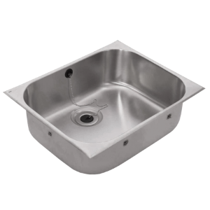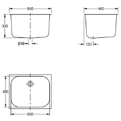 Einlegebecken, Chromnickelstahl, Oberfläche seidenmatt, Materialstärke 0 ,9 mm, 20 mm umlaufender Rand, mit Überlauf- und 38 mm Ablaufprägung, Ablauf mittig, inklusive Befestigungsklammern. Nicht im Lieferumfang enthalten: Ablauf, Stopfen, Kette und Überlaufgarnitur. Hinweis: Möglicherweise muss die Arbeitsplatte zur Montage des Überlaufs mit einer Kerbe versehen werden. Abmessungen 540 x 300 x 440 mm (B x H x T) Muldenmaße 500 x 300 x 400 mm (B x H x T)