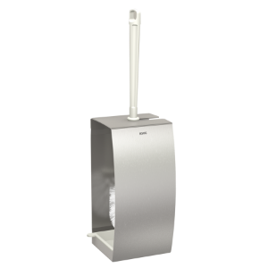 WC-Bürstenhalter, für Aufputzmontage, Chromnickelstahl, Oberfläche seidenmatt, Materialstärke 1,5 mm, Front mit InoxPlus Oberflächen veredelung zur Reduzierung von Fingerabdrücken und mit besseren Reinigungseigenschaften (easy to clean), gebogene Front, nach vorne geschlossenes Gehäuse, weiße Nylonbürste mit Randreiniger, Bürstenentnahmeöffnung links oder rechts je nach Montage, entnehmbare Pl astikabtropfschale, inklusive Edelstahlschrauben und Dübel. Abmessungen 110 x 397 x 110 mm (B x H x T)