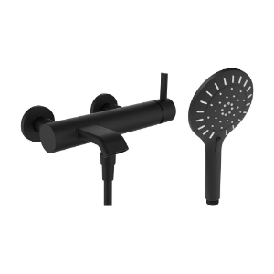 LAUFEN - MEDA - Bademischer, Anschlussdistanz 153 mm, Ausladung 180 mm, Festauslauf, mit Verschraubungen, mit Kunststoffschlauch 1600 mm, mit Handbrause MyTwin120 3F, PVD Titanschwarz matt, Art.Nr. :HF506660428000